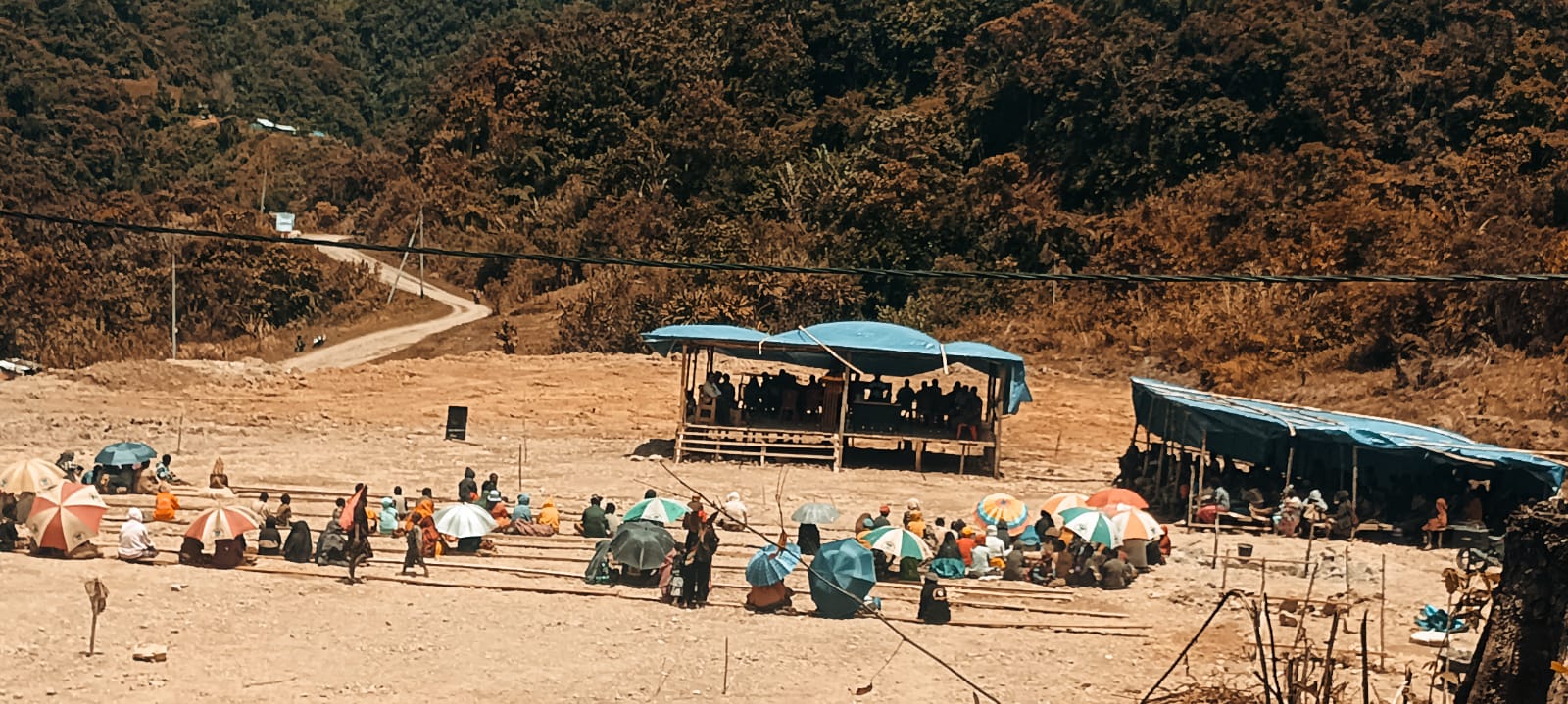 Umat gereja Katolik Stasi St. Paulus Obaikagopa Paroki Maria Kampung Obaikagopa, Distrik Mapia, Kabupaten Dogiyai Provinsi Papua Tengah saat menyaksikan peletakan batu pertama pembagunan gedung gereja Katolik Stasi St. Paulus Obaikagopa Paroki Maria, pada Rabu, (06/11/2024).