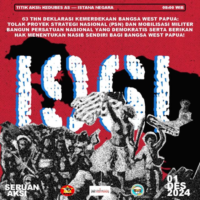 “Maka dalam memperingati momentum 63 tahun deklarasi kemerdekaan bangsa Papua ini kami mengajak & mengundang seluruh elemen gerakan rakyat Papua, solidaritas rakyat Indonesia & mahasiswa secara khusus yang ada di sekitaran area Jabodetabek untuk dapat terlibat dalam aksi Demonstrasi Damai,” katanya.