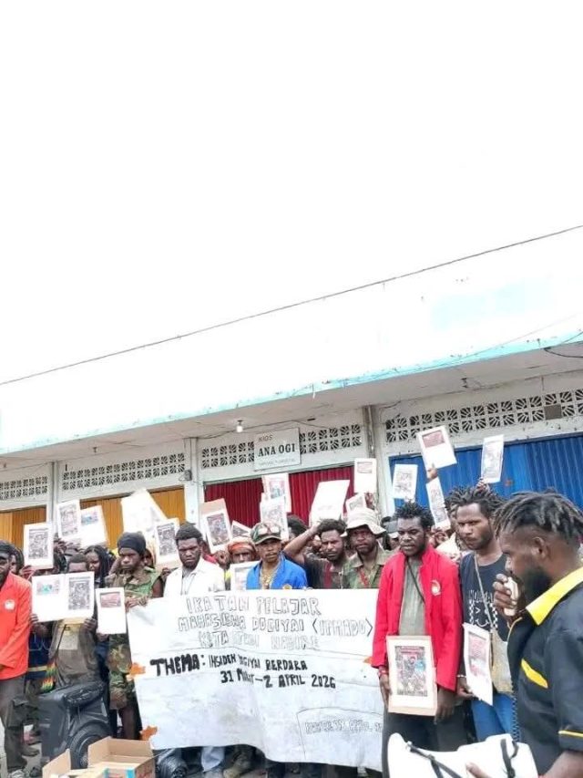 Nabire, tiiruu.com – Pelajar, mahasiswa, dan masyarakat menggelar aksi mimbar bebas bertema “Insiden Dogiyai Berdarah” di Pasar Karang Tumaritis, Nabire, Sabtu (18/4). Kegiatan yang berlangsung sejak pukul 07.00 hingga 12.00 WIT ini diisi dengan orasi, aksi simbolik, serta pembacaan pernyataan sikap yang menuntut keadilan atas dugaan kekerasan terhadap warga sipil di Dogiyai.