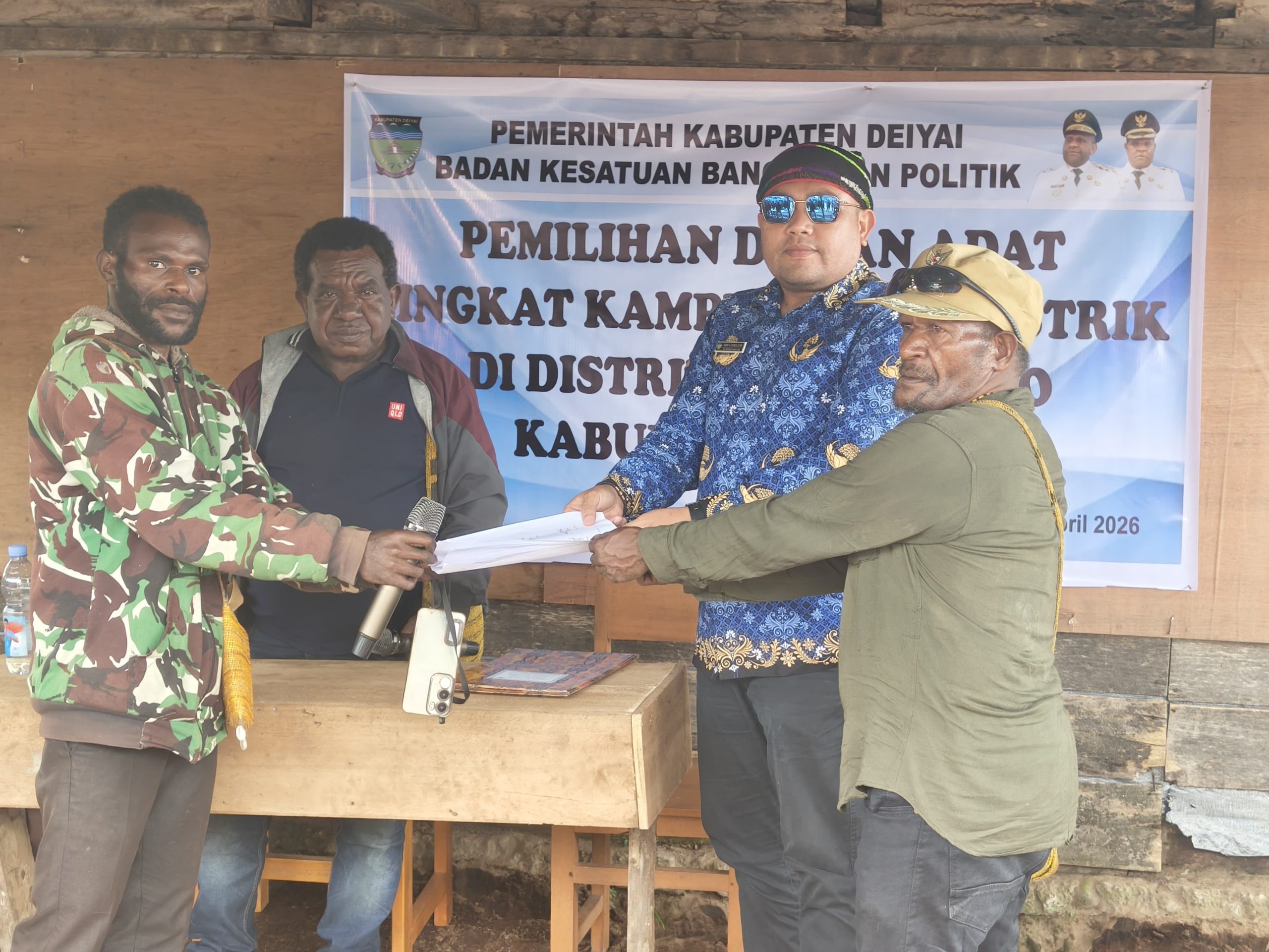 Deiyai, tiiruu.com — Badan Kesatuan Bangsa dan Politik (Kesbangpol) Kabupaten Deiyai melakukan monitoring dan pengawasan terhadap pelaksanaan pemilihan Kepala Suku Mee tingkat kampung dan distrik di wilayah tersebut. Proses pemilihan yang berlangsung di sejumlah titik dilaporkan berjalan aman, tertib, dan mendapat partisipasi aktif dari masyarakat.